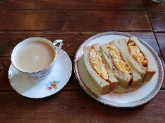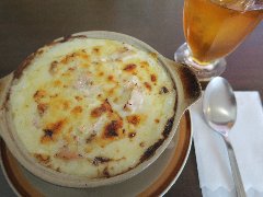 ![]() | 船堀駅北口から1分ほど、線路の高架沿いにあります。ビルの1階です。外からメニューサンプルが見えます。店内は、テーブルが9つありました。三角形のフロア、窓が大きく明るいです。昔ながらの喫茶店の雰囲気、まったりしていました。グラタンのランチセット(1060円)を注文しました。スープ、サラダ、ドリンク、デザート付きですが、サラダ切れで温泉卵が付きました。グラタンは熱々、具はエビ、マッシュルーム、マカロニはやや硬めでした。温泉卵を乗せるといい感じでした。食後のドリンクとアイスが有難いです。美味しかったです。他には、各種ドリンク、フルーツパフェ、プリンアラモード、ナポリタン、サンドウィッチなどがありました。9時からモーニングがあります。 |