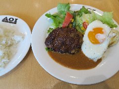 ★ (2016.1.30) | 普通 | ![]() | 銀座一丁目駅、東銀座駅から3分ほど、昭和通り沿いにあります。AOIはアオイではなくエーオーアイと読みます。外のショーケースにサンプルが並んでいます。店内は、カウンター席が6つ、テーブルが4つありました。テーブルの引き出しに箸が入っています。ハンバーグライス(890円)を注文しました。ハンバーグは、味が濃い国産の牛スネ肉、玉ねぎを使っているそうです。和風ソースが掛かっています。目玉焼き、多めの野菜サラダ、ポテトサラダが添えられます。ライスは多めでした。ハンバーグは柔らかく、濃い目めの和風ソースが美味しいです。他には、デミグラスソースハンバーグ、ぜいたくダブルハンバーグ、アボカドわさび醤油ハンバーグなどがありました。帰りに次回使えるコーヒー券をもらえます。 |