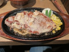 ヒーローズ | 洋食 | 東京都千代田区外神田 | ★ (2015.3.23) | 普通 | ![]() | 秋葉原駅電気街口から2、3分、神田明神下の交差点近くの路地にあります。ステーキとハンバーグの看板が目立ちます。店内はテーブル席が多数ありました。割と余裕のあるテーブルの配置です。壁や床は木ですが、それほどウエスタン感はありません。ランチメニューから、ハンバーグ(ラージ・300g)(1004円)を注文しました。ライス、スープが付きます。ライスは大盛り、1ポンドまで無料で出来ます。スースは、おろし和風、クリーミーガーリック、デミグラス、にんにく醤油、ねぎ塩、から選びます。デミグラスにしました。手こねで作る肉っぽいハンバーグです。なかなかのボリュームですがペロリといけます。通常メニューの、1ポンドステーキや2ポンドステーキなどが名物です。店員さんは丁寧でした。 |