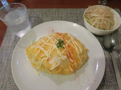 ![]() | 千住大橋駅から5、6分、国道4号沿い、千住警察署入口の交差点の近くにあります。マンションの1階です。店内は、カウンター席が3つ、テーブルが6つありました。今どきの洋食屋の雰囲気です。ケチャップオムライスM(1265円)+カニクリームコロッケ(605円)を注文しました。スープはセルフサービスです。オムライスは玉子焼きにきれいに底まで包まれていました。ケチャップライスにはマッシュルーム、玉ねぎ、ベーコンなどが入っていました。コロッケはサクトロでした。美味しかったです。他には、オムライスのソースはデミ、トマト、クリーム、カレー、各種トッピングなどがありました。人気があるようです。 |