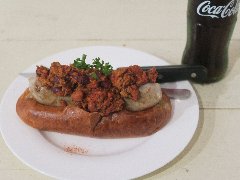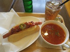 シュトゥーベン・オータマ | 洋食 | 東京都福生市福生 | ★ (2012.9.1) | 普通 | ![]() | 福生駅東口から3分ほどのところにあります。ドイツ風の大きな建物がかなり目立っています。ドイツ料理のレストランとハム製品の直売のお店です。ですが今回は、福生のB級グルメである福生ドッグが目的で来ました。福生ドッグはハム売り場でテイクアウトできます。福生ドッグ(460円)を食べました。東京のブランド豚、TOKYO XのウィンナーとTOKYO Xのベーコンとレタスが入っています。ウィンナーが大きくてかなりボリュームがあります。美味しいです。ドイツ料理も食べてみたいですね。 |