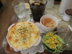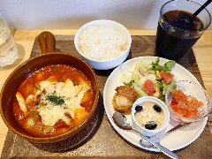 ![]() | 三鷹台駅の南口のすぐ前にあります。3階建ての建物の1階です。ガラス戸の外観です。店内は、カウンター席が2つ、テーブルが3つありました。小ぢんまりしていました。明るくてきれい、今風な雰囲気です。キッシュタルトのThe 3rdプレートセット(1340円)を注文しました。サラダ、スープ、ドリンク付きです。スープはオニオンスープでした。キッシュタルトはほうれん草などが入っていて少しチーズの風味がありました。周りの生地はサクサクです。コーヒーは飲みやすかったです。美味しかったです。他には、タコライス、キーマカレーライス、3rdチーズタルトなどがありました。 |