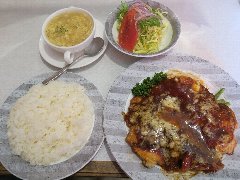 ![]() | 地下鉄赤坂駅から1分、地下鉄赤坂駅前商店会沿いですがちょっと引っ込んだ場所にあります。通り沿いにメニューが出てます。マンションの1階です。居酒屋風の入口です。店内は、テーブルが5つありました。奥にフロアがありちょっと変わった造りです。壁には絵画が飾られていました。明るくてアットホームな雰囲気です。ランチのイタリアンハンバーグ(990円)を注文しました。ライス、味噌汁、ドリンクが付きます。ハンバーグは溶けたチーズが乗り、トマトソースがたっぷり掛かっていました。割りと肉々しいハンバーグでした。美味しかったです。他には、オムライス、チキンカレー、ポークジンジャーなどがありました。 |