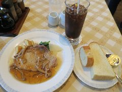 ![]() | 茅場町駅から4、5分、日本橋川の鎧橋や蛎殻町の交差点のほど近くの路地にあります。2階建ての建物、昭和8年に建てられたのレンガ壁の洋風でレトロな建物です。明治22年に牛乳屋として創業して戦後に洋食屋なったそうです。店内は、テーブルが9つありました。テーブルのみですが相席はしないようです。特に飾りっけが無くレトロ感が漂います。人気があるようで混んでいました。ポークソテーライス(630円)を注文しました。銀の皿に、ポークソテー、サラダ、ナポリタンが乗っていました。ポークソテーはやや薄め、柔らかくいい焼き具合です。美味しかったです。そしてこの立地からして安いです。他には、カレーライス、ハンバーグライス、エビフライライスなどがありました。 |