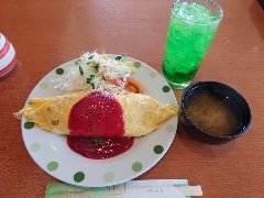 ![]() | 青砥駅西口から6、7分、青戸ミナミ通り商店会にあります。2階建て建物、緑色の庇が目印です。店内は、カウンター席が4つ、テーブルが4つありました。レトロ感があります。オムライス(500円)を注文しました。スープが付きます。オムライスには野菜サラダちマカロニが添えられます。オムライスは丸形、玉子焼きの下はチキンライス、鶏肉が入っていました。懐かしい味わいです。ボリュームもあります。美味しかったです。しかも安すぎです。他には、日替弁当、トンカツ弁当、ハンバーグカレー、ナポリタンなどがありました。ランチのコーヒーは100円です。 |