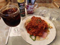 ![]() | 小岩駅南口から4、5分、小岩四南通り沿いにあります。3階建ての1階です。店内は、カウンター席が4つ、テーブルが4つありました。至る所に様々なレトロな時計が飾られていました。やや薄暗く独特な雰囲気です。テーブルにはタバスコが5種類置かれていました。ナポリ風スパゲッティ(1150円)を注文しました。ハム、あさり、エビ、マッシュルーム、玉ねぎ、ピーマンなどが入っていました。味付けは甘めのトマトソースです。具だくさんでパスタの量もかなり多めですが飽きずにつるつるといけます。でも女性などは食べ切れないかも。美味しかったです。他には、イタリー風、クリームナポリ、地中海風、ピザもありました。 |