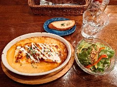 ![]() | 三鷹駅北口から3分ほど、都道121号沿いにあります。3階建ての1階です。間口は狭いです。店内は、カウンター席が6つありました。奥に細長いです。2階にも席があるようです。ラザニ屋のラザニア(1150円)とバケット(50円)を注文しました。サラダが付きます。ラザニアは熱々、ミートソースとベシャメルソースの中にもちもちのパスタ、マッシュルームやトマトなどが入っていました。パスタと絡んむソースがとても濃厚です。ソースをバケットに乗せてもいいです。美味しかったです。他には、パンプニア、グリーンラザニアなどがありました。 |