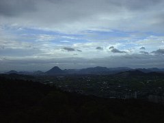 山の中腹です。海は遠くに見えます。ま、まさかここから歩くのか?