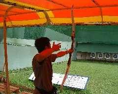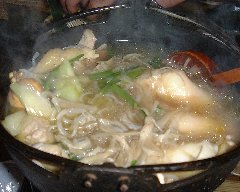 給仕の人がお盆いっぱいに蕎麦が入ったお椀を乗せてきて、各人が持っているお椀にテンポよく蕎麦を入れていきます。