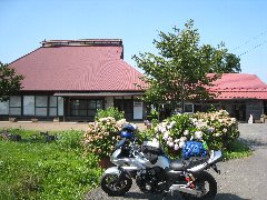玄関先の屋根があるところにバイクを置かしてもらいました。