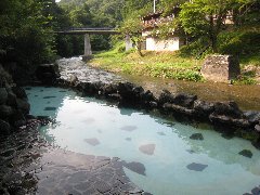 橋の先には木造の菊水館があります。そこにある南部の湯に入ることができます。