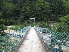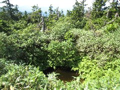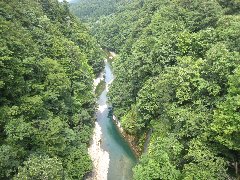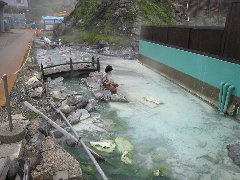橋からは先ほどの大沢に湯が見えます。タオルを振り回している人が見えます。アブと戦っているのですね。