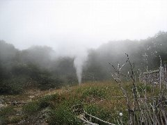 風呂のすぐ近くの地面から蒸気を上げているダイナミックな温泉が幾つもありました。
