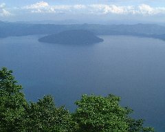 瞰湖台からの十和田湖 | 十和田湖、休屋のきりたんぽ鍋 | 十和田湖、御鼻部山展望台からの景色 (とてもいい景色です) |