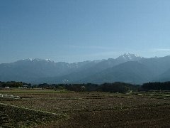 | 長坂辺りからの南アルプス (いい景色ですね〜) |