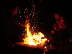 清里中央キャンプ場で焚き火 (かなり寒い・・) |