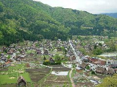 | 白川郷、合掌作りの茅葺き屋根A | 白川郷、萩町展望台からの景色 (定番の景色です) |