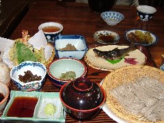 開田村、「中西屋」のざる蕎麦 (2段重ねです) |