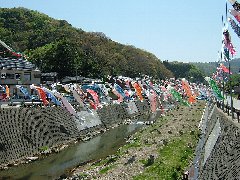 能登半島、大谷川の鯉のぼり |