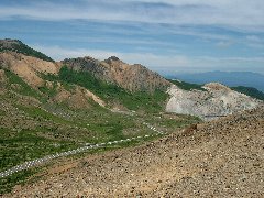 鳥海山、離陸準備中のヘリコプター | 鳥海山、飛び立ったヘリコプター | 鳥海山、鉾立展望台からの景色@ |