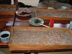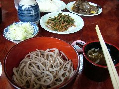 | 「七兵衛」のそばと突き出し (そばは食べ放題です) |
