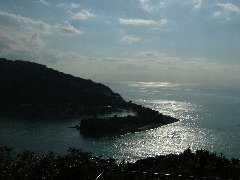 県道17号の展望台からの景色 | 夕映えの丘からの戸田港 (御浜崎が見えます) |