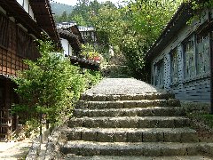 | 木曽の宿場、妻籠宿の風景@ (時代劇のセットみたい) |