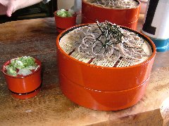 | 高遠、「華留運」の高遠そば (辛味大根と焼き味噌をそば汁に溶きます) |