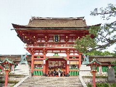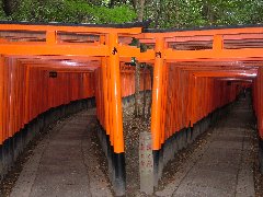 | 京都、伏見稲荷大社の桜門 | 伏見稲荷大社の鳥居 (トンネルのようにず〜と続いています) |