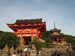 | 京都、清水寺の仁王門 | 清水寺の舞台 | 清水寺の舞台からの景色 (京都の町並みが見えます) |