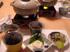 | 妻籠宿、「満寿庵」のくずきり | 郡上八幡、郷土料理の「大八」 | 郡上八幡のレインボーオートキャンプ場 (こじんまりしています) |