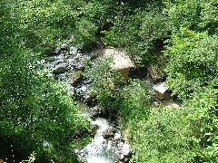 | 橋の上から見た白骨温泉の「野天風呂」 (川沿いにあります) |