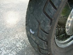 唐沢集落、「山法師」のせいろそば | 木崎湖の「海の口キャンプ場」の朝 | 金属片が刺さったスティードのタイヤ (パンクです・・・) |