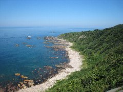 | 鯵ヶ沢からの日本海 (一日中、雲がないですね) |