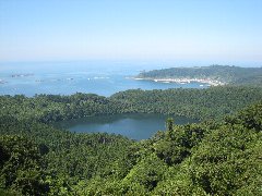 八望台からの二ノ目潟 (マール(特殊火山湖)というそうです) |