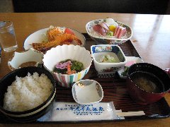 「十府ヶ浦食堂」のうに丼と刺身盛り (旨い!) |