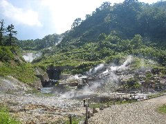 八幡平、「ふけの湯」 (至る所から噴煙が上がっています) |
