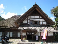 | 南会津、「そば処曲屋」 (茅葺屋根の曲家です) |