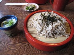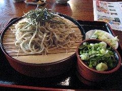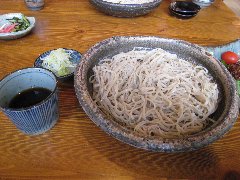 | 新島々、「のりくら旅館」のざるそば | 乗鞍高原、「湯けむり館」の露天風呂 (気持ちのいい風呂です) |