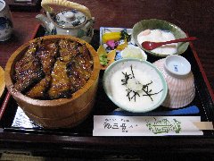 秋葉神社の本堂 | 秋葉神社からの景色 | 浜松、「中川屋」のうなぎとろろ茶漬け (ほぼひつまぶし、美味しいです!) |