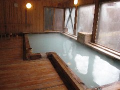 「湯けむり館」の内風呂 (木の風呂と床がいいですね) |