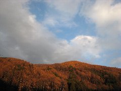 | 県道26号沿いの紅葉 (夕日が当たってさらに真っ赤です) |