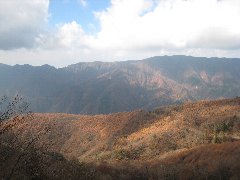 | 県道251沿いの紅葉 | しらびそ峠の景色 (残念ながら曇っています) |