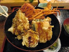 弓ヶ浜、「青木さざえ店」の伊勢海老天丼 | 東伊豆、海に映る月 (この写真じゃよく分かりませんね) |