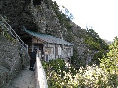 石廊崎、石室神社 (岩に張り付いて建っています) |