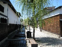 飛騨古川の町並みB (水路と土蔵が雰囲気を醸し出します) |