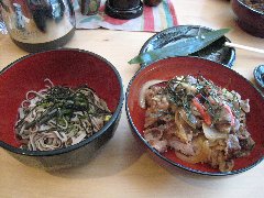 飛騨古川、「祭」の飛騨牛にぎり寿司 | 飛騨古川、「祭」の飛騨牛丼 |