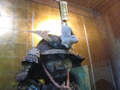 越前大野城の天守からの景色B | 越前大野城に展示されていた鎧兜 (ウサギが付いてます、撮影禁止です!) |