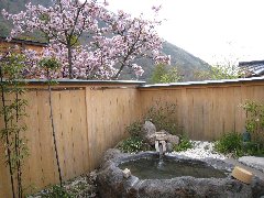 奥飛騨、「水明館佳留萱山荘」の野天風呂入口 |