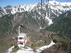 新穂高ロープウェイと笠ヶ岳 | 西穂高口駅からの西穂高岳 (まだ雪がたっぷりです) |